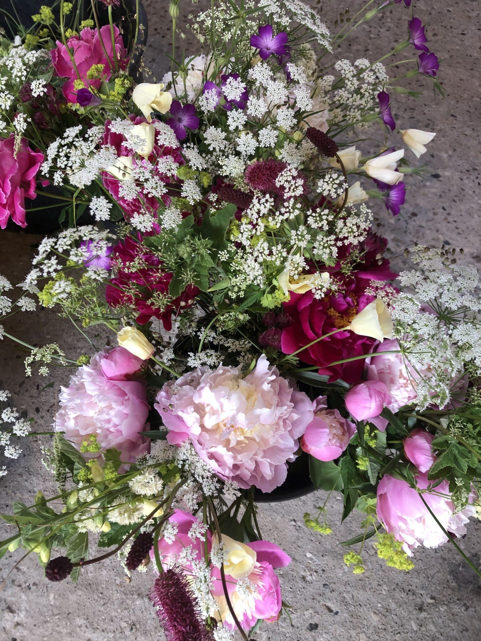Mine buketter bliver bundet ud fra årstidens blomster. Ved større fester planlægger vi sammen farver og udtryk, mens vi går rundt i blomsterhaven.